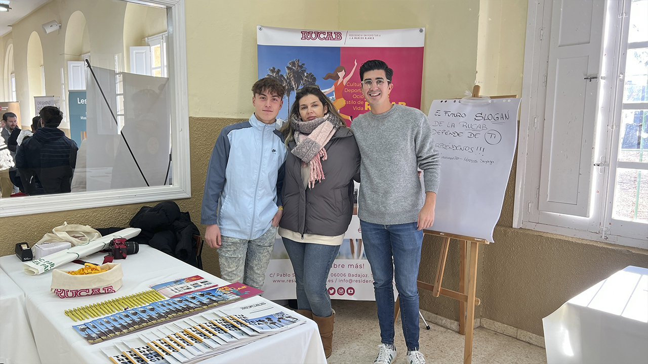 Nuestra situación es privilegiada, ya que la RUCAB se encuentra ubicada al lado del campus universitario. Motivo por que el muchos se paran en nuestro stand para conocernos y saber más sobre las instalaciones; si vas a estudiar en Badajoz, la RUCAB es la mejor opción para no tener que preocuparte de nada, solo de estudiar y pasarlo bien.