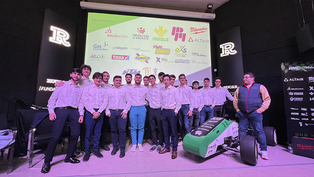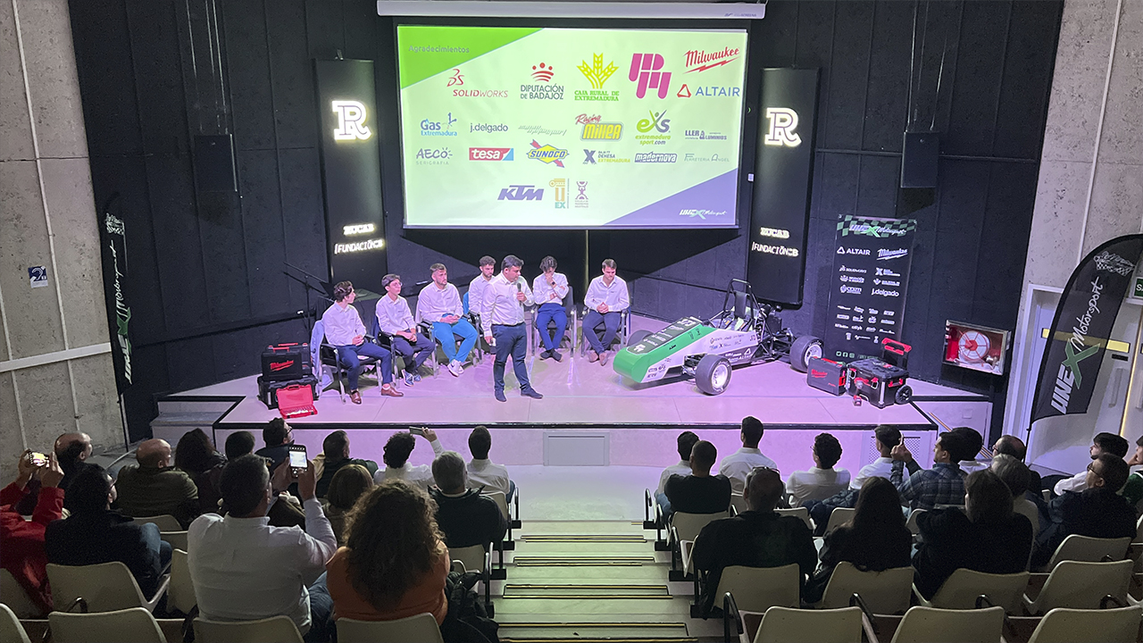 Un total de diecisiete universitarios forman parte del equipo Unex Motorsport, han estado en el salón de actos de la Residencia Universitaria de Fundación CB para presentar oficialmente el bólido que han estado fabricando durante cuatro años. El objetivo principal es conseguir la participación en el próximo verano en la Fórmula Student Sapin, un certamen en el que se miden ingenieros de toda Europa.