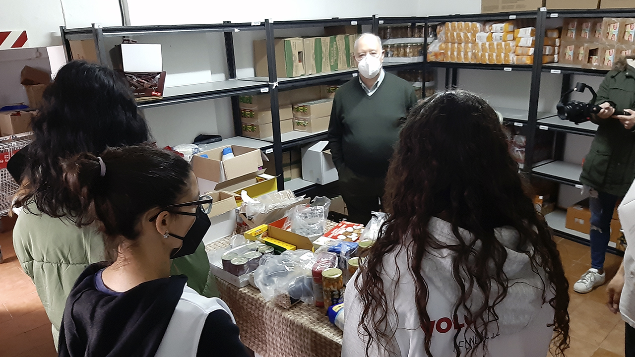 La segunda parada se encuentra en la vivienda social de la calle San Juan, de Cáritas Parroquial. En este lugar nos esperaba su responsable Don Andrés; el cual nos enseñó el centro de alimentos, cómo está distribuido y de qué manera actúan. Nos explican que en la actualidad a la situación está muy orientada a la entrega de alimento para paliar esta necesidad vital, pero que en sus objetivos principales está ayudar a estas personas a procurar sus propios medios que les permitan desvincularse de las ayudas de alimentos. Como el caso de búsqueda de empleo, asesoramiento y ayudas de todo tipo para la vida diaria.