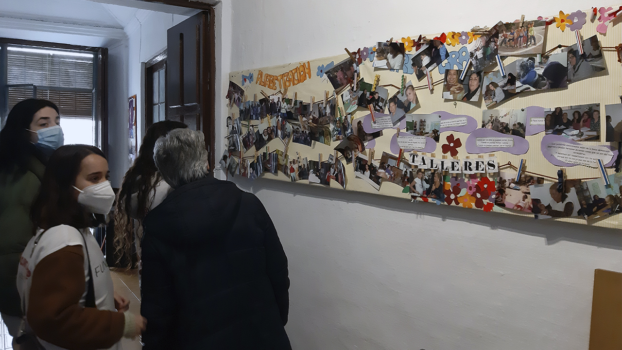 Posteriormente, en la misma vivienda, subimos a visitar a Pilar, responsable de la Asociación Equipo Solidaridad. Donde nos esperaban todas las mujeres que conforman esta iniciativa, tan necesaria en los tiempos que corren. Pilar nos explica que esta no es una escuela convencional, está enfocada a mujeres excluidas, extranjeras, sin medios ni recursos para afrontar sus vidas.